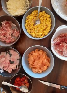 塩味バージョンは後でチーズをとかすのに焼くので、焦げ目は少な目で。